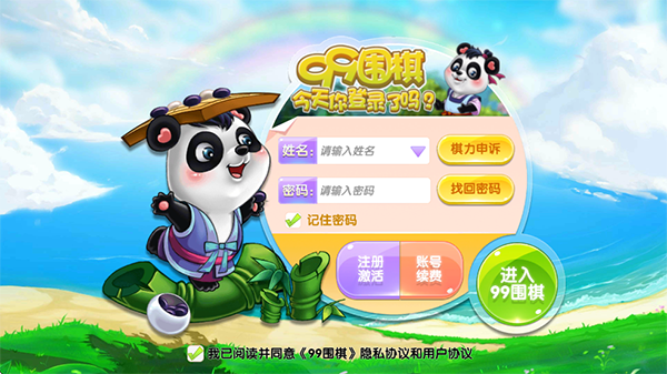 1、在本站下载安装99围棋2.0熊猫版app,打开软件,进入登录界面。