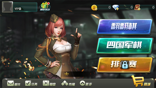 天天军棋腾讯版是由腾讯公司开发的一款休闲棋牌类游戏,以军事主题为游戏风格,包含翻翻棋,四国暗棋,四国明棋,单挑暗棋等多种游戏玩法。方便快捷的操控体验,可直接放大棋盘,快速选中棋子,多个空间打造、储存玩家的专用布局,玩家可选择喜欢的玩法,系统会随机分配水平相当的玩家进行对战,在游戏中提高自己的游戏等级和金币数量。