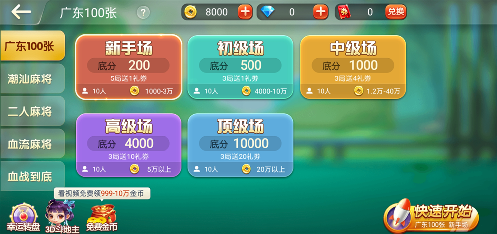 闲来广东麻将官方正版是一款以广东地区麻将玩法为主的手机麻将游戏,独特的玩法可以为你带来不一样的麻将乐趣。广东麻将的主要规则是以鸡平胡、推倒胡等玩法,其中推倒胡是深圳、东莞等地区目前最为流行的玩法,这种玩法不许吃牌只能自摸,并且讲究杠牌、买马,打法简单节奏快,鸡平胡讲究鸡胡、平胡、爆胡,玩法比较刺激。闲来广东麻将还拥有斗地主、跑得快等其他玩法,感兴趣的朋友欢迎下载体验!