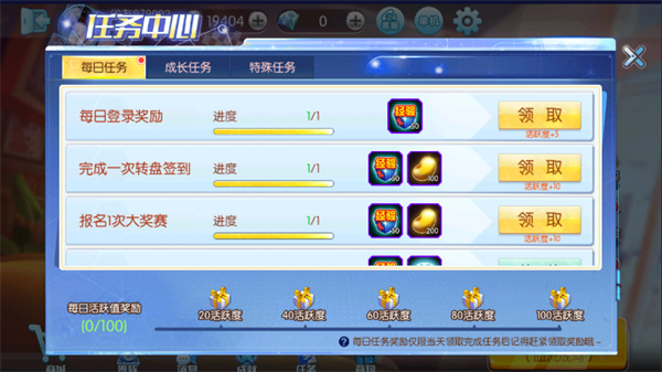 3、点击首页下方的任务,有每日任务,成长任务,特殊任务待玩家完成;