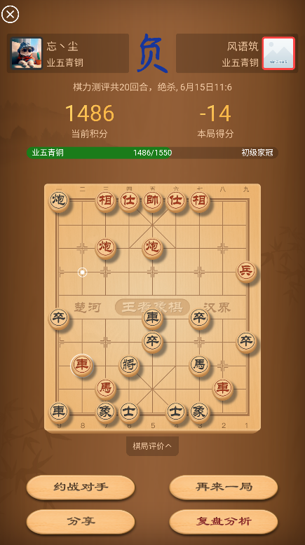 4、完成棋力测试后,系统会根据玩家的棋艺水平给出分数。棋力测试可以帮助玩家了解自己的棋艺水平,从而更好地提高棋艺水平。