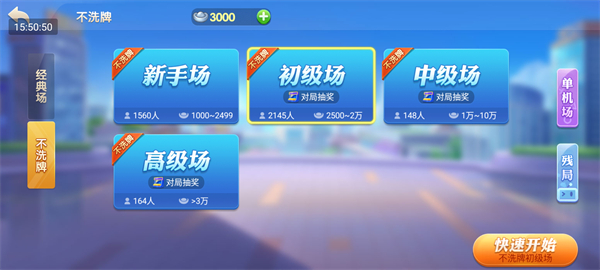 在不洗牌玩法中,你可以根据自身的银两数量选择不同的场次,包括新手场、初级场、中级场、高级场等。选择适合自己的场次参与对局,逐步提升自己的实力。