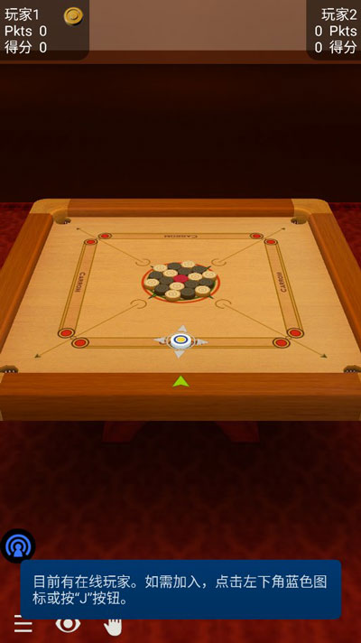 4、选择完成后,进入球桌,你可以先与人机对战,如有在线玩家会有提示,只需点击左下角的按钮,然后选择“现在加入”即可,如图所示: