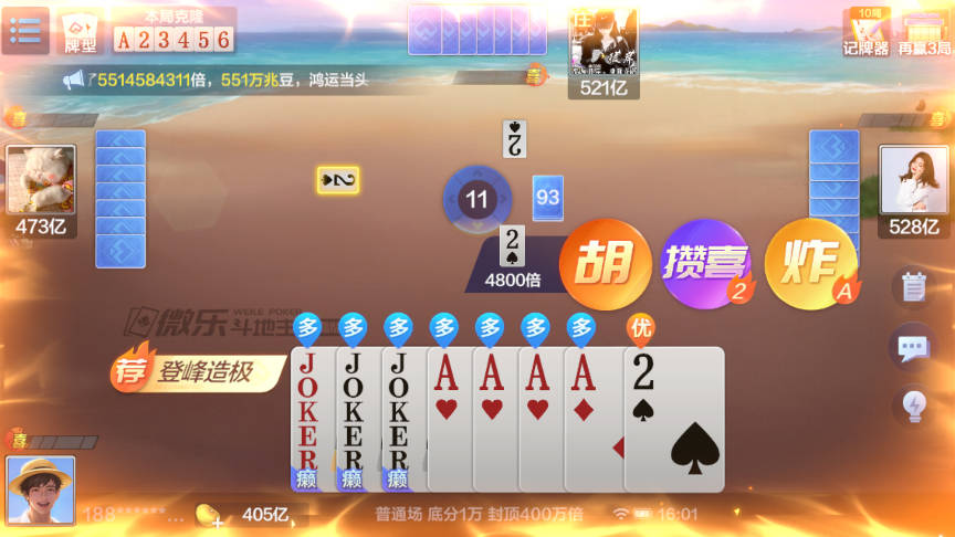 微乐斗地主是一款经典斗地主手游,游戏玩法涵盖主流斗地主规则和丰富的地区特色,刨幺、掼蛋、够级、挖坑等应有尽有,更有独创玩法如至尊八喜牌、癞子+喜牌等,带来惊喜翻倍的刺激对局,趣味无穷。微乐斗地主手机版还支持真人在线匹配,海量用户在线一秒组局,快速开局无需等待。与同城牌友切磋交流,感受方言语音互动的独特魅力,增添游戏的趣味性。好友之间还能定制约局,闲暇时光来一局轻松打发时间!