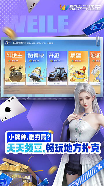 斗地主、掼蛋、跑得快、升级、锄大地、五十K、保皇、八喜牌...... 你想玩的经典玩法这里都有!