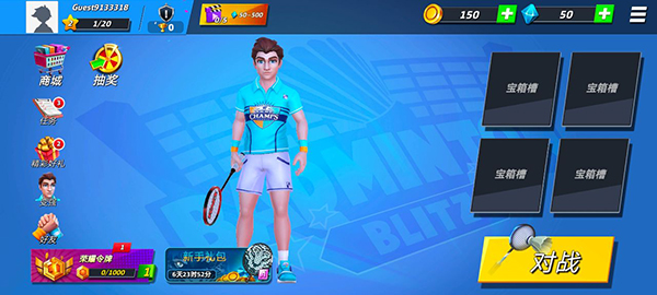 - 更多的惊喜:神秘宝箱、黄金宝箱十连抽、球拍、训练卡、经验卡、皮肤碎片、钻石、金币海量。