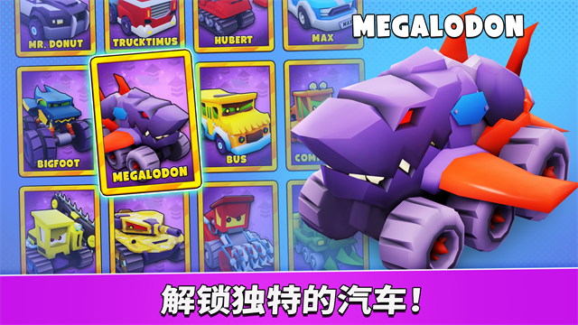 你从未见过如此这般的。现从四面八方都可以看到 Beetlee、Gator、Locomachina、Tankominator 和其他传说中的饥饿汽车,全面呈现其辉煌!每辆车都有一个独特的功能,使其独一无二。它们会帮助你打败危险的外星人!投弹,咬合,高速撞击并获胜!