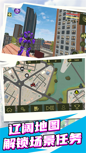 城市英雄机甲救援是广州秦时网络科技有限公司开发的一款集合了跑酷、竞技、格斗等多种元素的休闲趣味手机游戏,由于这个城市被神秘人占领,玩家将背负起拯救城市居民安危的责任,化身成为一个正义使者汽车机器人,玩家可以变换形态,在需要速度追捕敌人时,就可以迅速变身成为一辆赛车,开启神秘的跑酷旅程。在追捕到敌人之后可以恢复战斗机器人的原貌,购买武器装备来对战神秘人,超高的自由度以及操控感一定能给你带来全新的体验,炫酷的格斗场面、精彩的特效相信你一定会爱上的,并且城市英雄机甲救援操作不难,很容易就可以获得良好的游戏体验,非常适合朋友们用来打发时间,刺激的节奏感和打击特效相信你一定会爱不释手的,赶快来下载试玩吧。