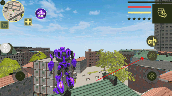 2、长按这个按钮,可以实行高度跳跃,能够跳上屋顶,轻松实现飞檐走壁。