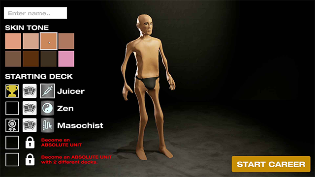 1、进入游戏后,挑选一位角色并自定义名称,确认后点击右下角的“start career”开启健身生涯。