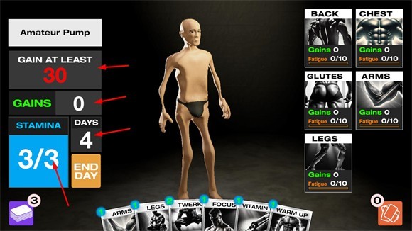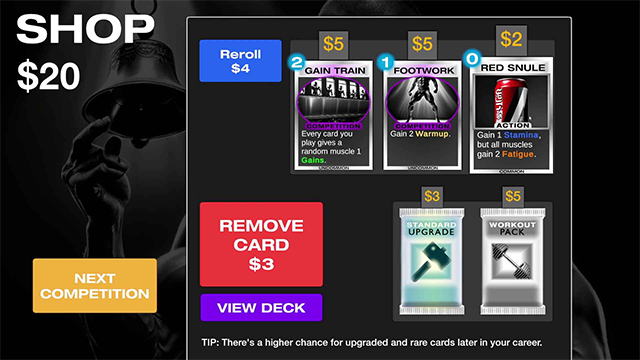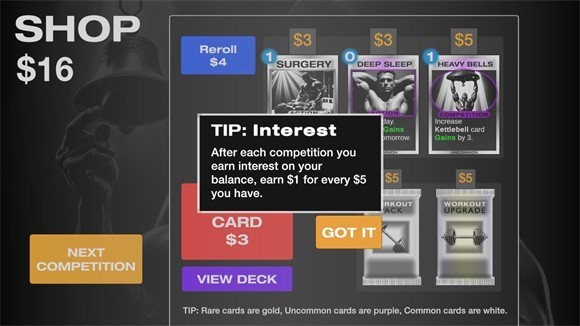 7、胜利后可获得金币奖励,金币可用于解锁全新训练卡牌,优化训练方案,向着终极健美冠军的目标迈进!