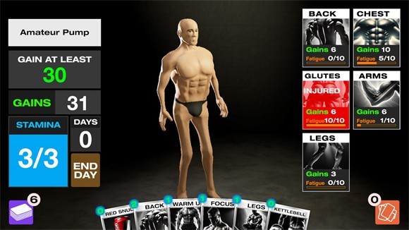 健身模拟器(GET YOKED)手机版是一款模拟健身游戏。在这里,你将化身ABSOLUTE UNIT,踏上通往Gains-Town的旅程,利用各种锻炼卡片塑造身材,争夺终极健美冠军的荣耀。游戏设定幽默风趣,你需要在锻炼与恢复之间找到平衡。使用Arms卡增强二头肌,或专注于腿部训练,让自己成为纯粹的臀肌爱好者。但小心训练过度,过劳会导致受伤,影响你的收益。适时使用休息或补充卡,让身体恢复巅峰状态,最大化成长收益。