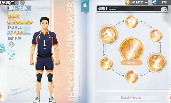 其次是技能提升,除开N级角色外,其他的球员在获取时解锁的基础技能仅有三个,而当完成角色相应的训练时,则可解锁角色的新技能。