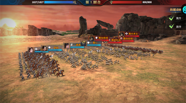 多军团协同作战,武将技能实时释放,可开启/关闭技能动画,高效推进PVE/PVP战斗。