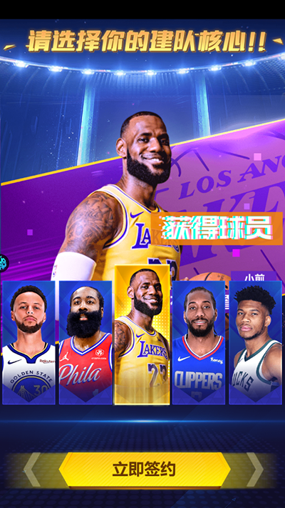 1、下载后打开进入游戏,首先我们需要签约球员,点击签约;