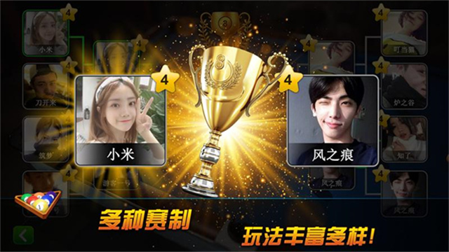 1、使用标准的8球规则或9球规则对抗计算机AI/玩家。