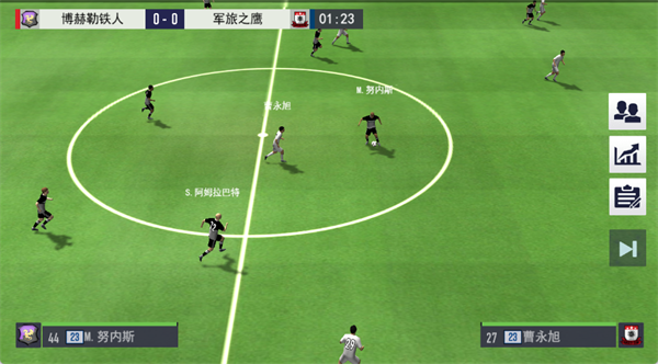 比赛中观察球员射门、传球等 “精准操控” 系统,关注球员实时表现,根据局势调整战术,尽享真实竞技快感。